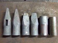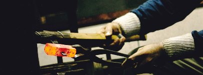 | ファイアーツール 火造り動画 ファイアーツールの先端を尖らせる作業の動画。素材を1,000℃に加熱し、機械ハンマーで叩いて尖らせるのだ。職人の勘を頼りに行う楽しい作業である。 |