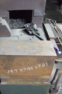 ![]() 第三章 ヒツ穴が玄能の要 ・柄の仕込み (2) 具体的に樫を使った例でご説明します。 但しこの方法はテーパーの強いヒツ穴や、 ヒツ穴の精度が出ていない場合には適応しませんので、 ご了承ください。 まず玄能頭部の木柄を差し込む側のヒツ穴外周部をヤスリで面取りします。 最初は45度で1厘(0.3o)程度の面を取ります。 そしてその面取りしたカドをさらに面取ります。 両カド共に面取りしますので、 これで3段の面取りになります。 木柄側の差し込む部分の加工は、 ヒツ穴より片側1厘、 両側で2厘程度太く削ります。 ヒツ穴入口の大きさが8o×24oであれば、 8.6o×24.6o程度でしょうか。 なお差し込む部分は縦・横共にほぼ平行に削りますが、 極僅かに先細り様にした方が良いようです。 先程ご説明した寸法の8.6o×24.6o程度というのは、 この先端部分の寸法になります。 面取りしたヒツ穴に木柄を差し込みますが、 木柄に薄く油をひいておくと作業が楽になります。 最初は真っ直ぐに入るように微調整しながら軽く叩き込みます。 少し入ったら細かく叩いて入れていきますが、 無理に最後まで入れずに、 数日かけても良いでしょう。 仕込みの深さは、 ヒツ穴深さの8分程度にして使い始めます。 使用していて少し緩んできた時は、 柄尻を叩きます。 木柄の先が玄能から出るほどにゆるくなったら、 いったん木柄を抜いて、 和紙やハガキなどの丈夫な紙を挟み込むようにして、 仕込み直してください。 また木柄の樹種によっても若干工夫が必要ですから、 いろいろと試してみるのもいいですね。 |