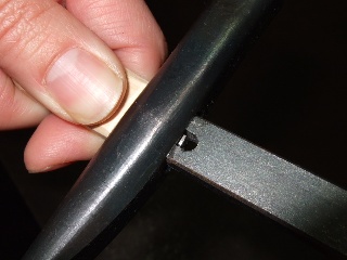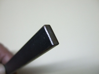 ・クサビを打ち込みなおすとき、穴の奥にクサビがある場合には、画像のような金属製のフラットバー(薄板)を使用すると良いでしょう。 |