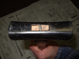 ・頭部と柄の間にまだ少し隙間が残っているようですが、この状態でも充分に固定されています。これで当分緩むことはないでしょう。 |
